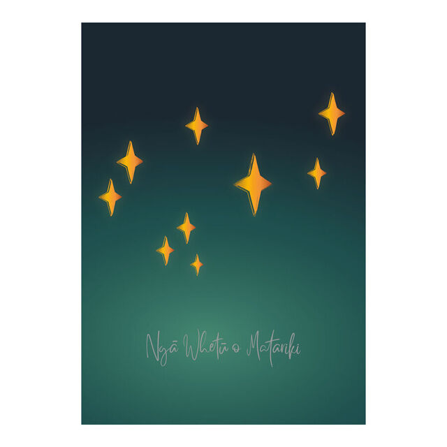 Celebrate the Māori New Year with Ngā Whetū o Matariki – 2025 Edition by Willa Black. This special release honours the rising of the Matariki star cluster — a time for remembrance, gratitude for the present, and aspirations for the year ahead. Soft twilight greens and glowing whetū create a calm, contemporary piece that carries meaning all year round. Designed and printed in Aotearoa on premium stock, it’s a thoughtful artwork for homes, classrooms and workplaces that wish to acknowledge Matariki with beauty and intent. See in the Artist's Description below.