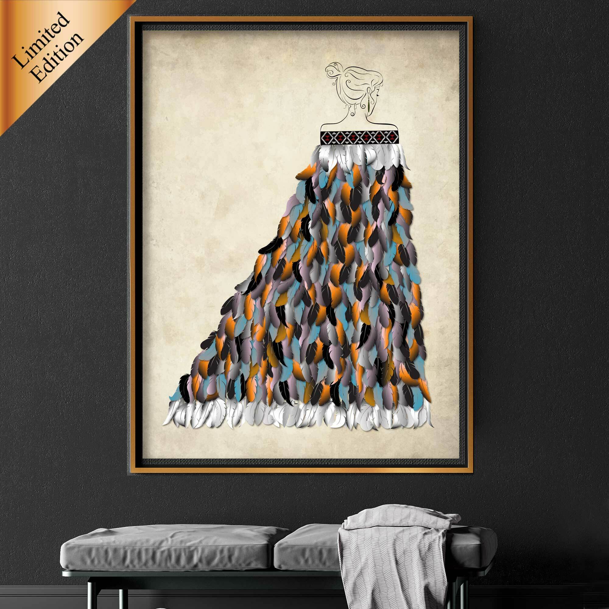 This piece honours the skilled hands and sacred knowledge of the weavers who bring these cloaks to life — and the deep sense of privilege felt by those who wear them. Te Kahu is more than art. It’s a story of identity, a visual acknowledgment of the past and a celebration of cultural resilience. Whether you are Māori, of mixed heritage, or simply drawn to the rich beauty of Aotearoa, this print invites you to connect with the legacy of honour, protection, and belonging. (Pictured: A0 Size)